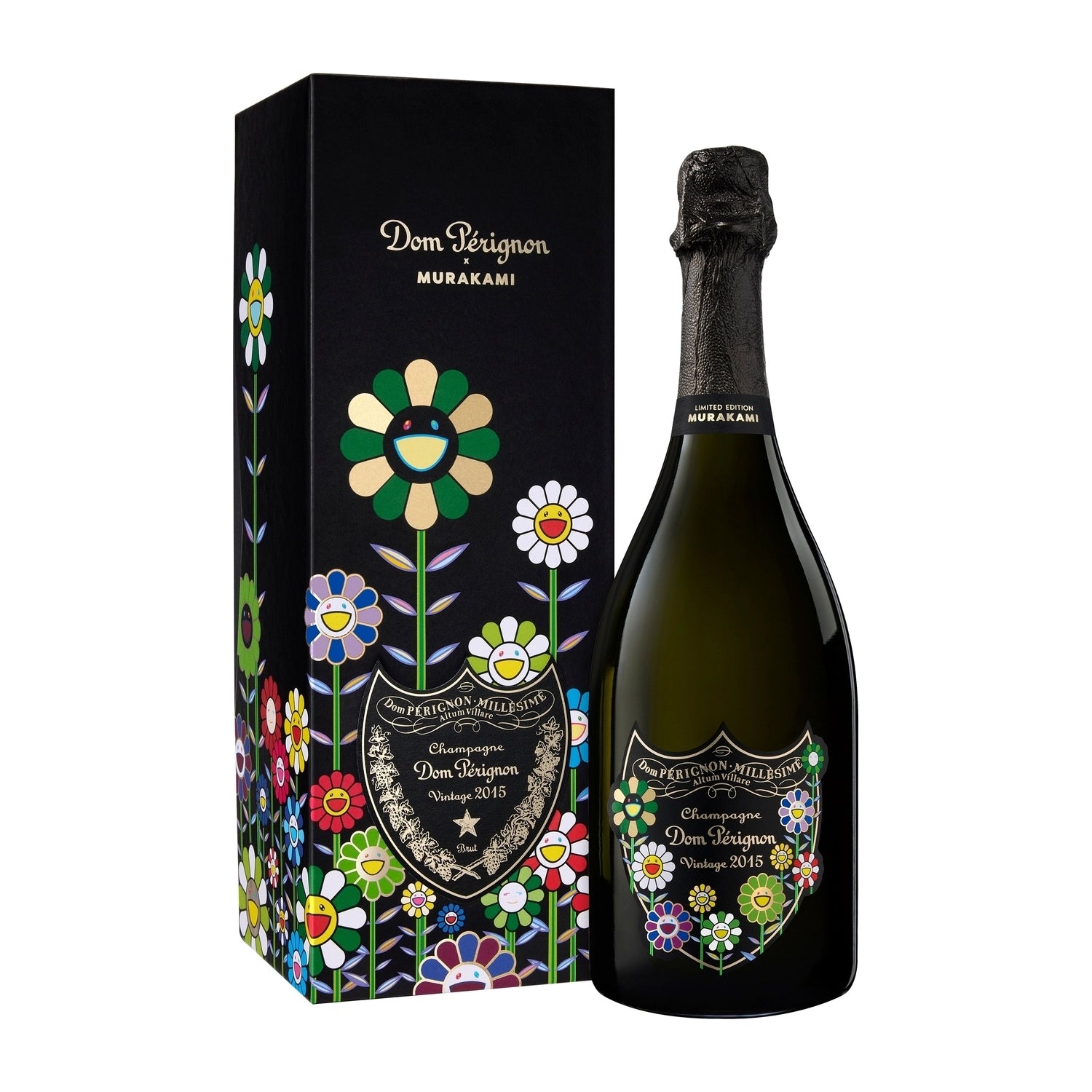Dom Pérignon je leta 2025 predstavil posebno omejeno izdajo svojega šampanjca Vintage 2015, pri čemer je za embalažo poskrbel japonski umetnik Takashi Murakami. Murakamijev podpisni slog “nasmejanih cvetov” je bil uporabljen na etiketi in embalaži, postavljajoč živahne barve in poetično energijo nasproti klasične eleganci šampanjca. Dom Pérignon opisuje sodelovanje kot združitev “zgodovinskega mojstrstva in neutrudnega iskanja inovacije.”