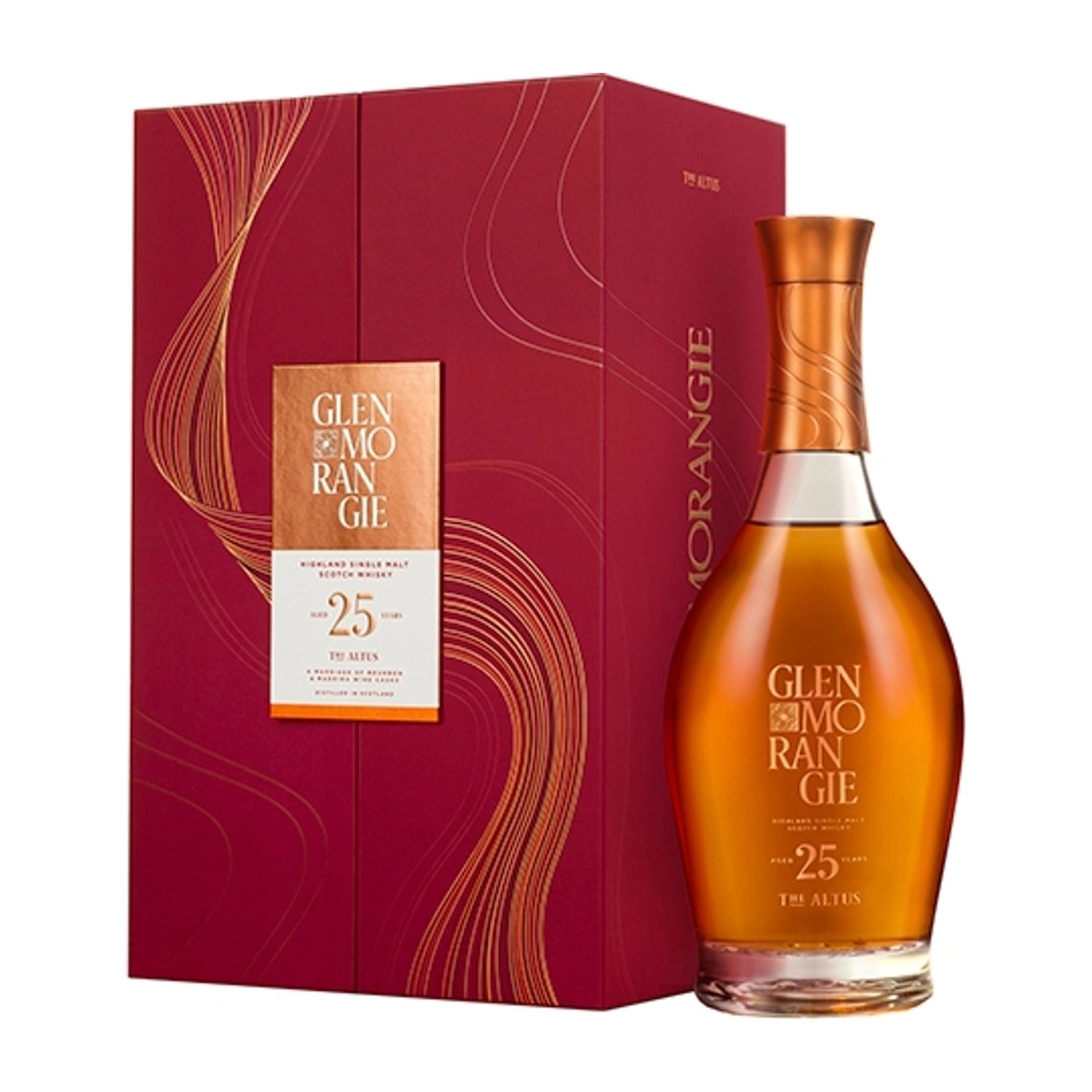 Glenmorangie The Altus 25 Years Old je izjemno redka in prestižna škotska enosladna viskija iz hiše Glenmorangie, znane po svoji eleganci in inovativnem pristopu k zorenju. Altus, kar v latinščini pomeni "visok" ali "plemenit", predstavlja vrhunec več kot četrt stoletja počasnega zorenja v skrbno izbranih sodih, med katerimi so tudi sodovi iz ameriškega belega hrasta, šerijevi in burgundski sodi. Rezultat je kompleksen in razkošen viski z globoko jantarno barvo, v katerem se prepletajo note suhega sadja, začimb, cvetlične topline in bogatega hrastovega značaja. Gre za izraz, namenjen pravim poznavalcem, ki iščejo redkost, prestiž in večplastno doživetje.
